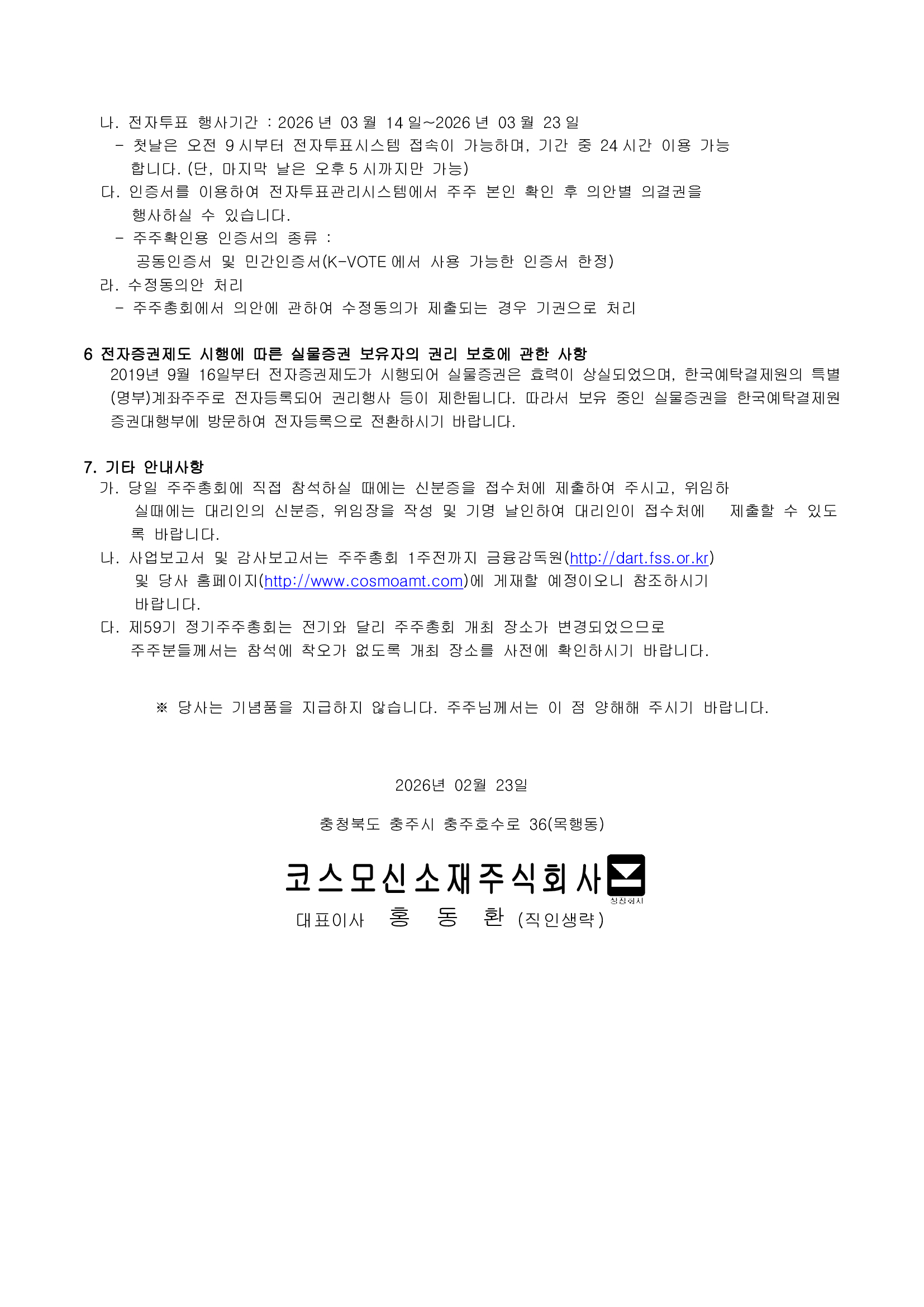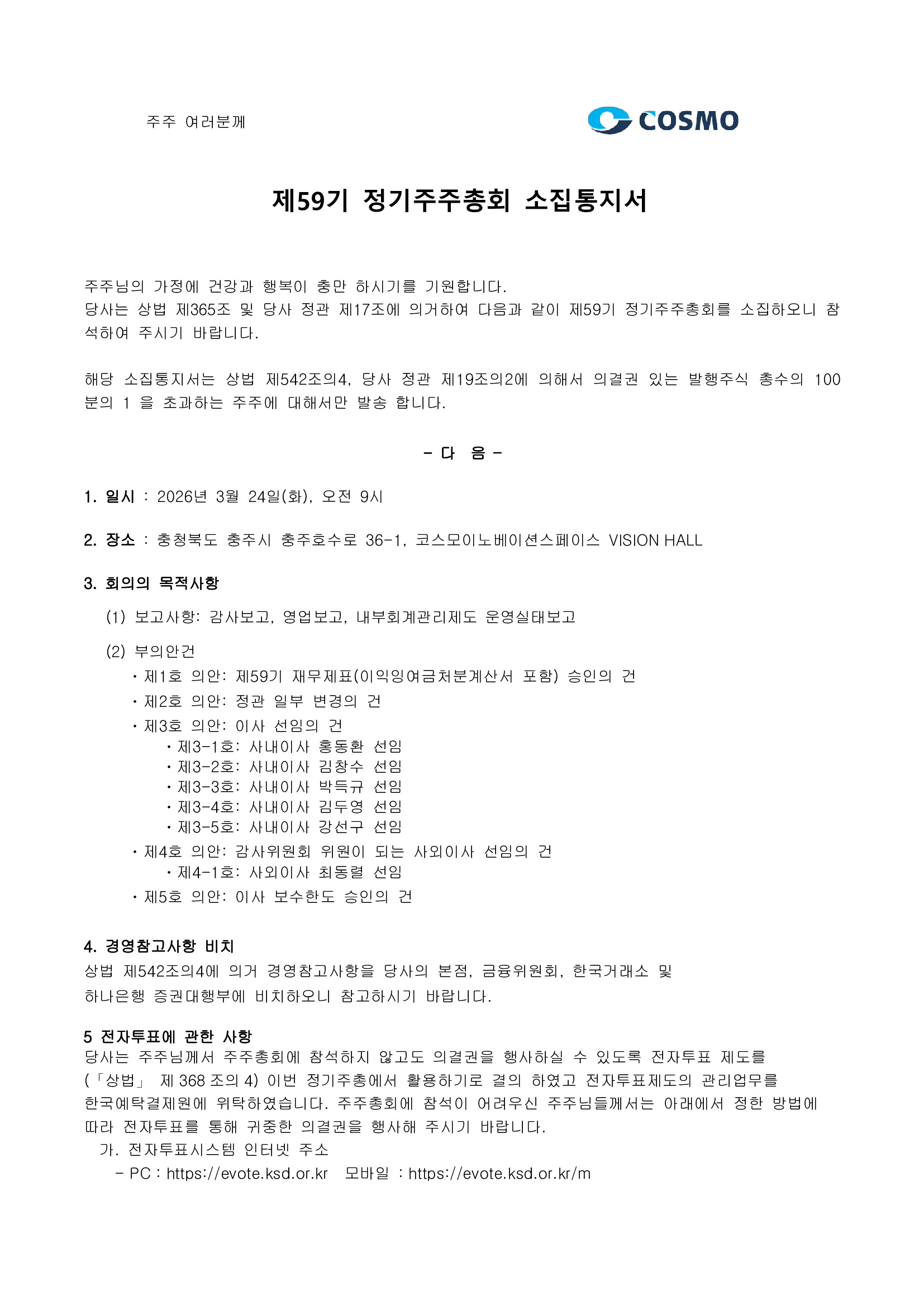 제 59기 정기주주총회 소집공고